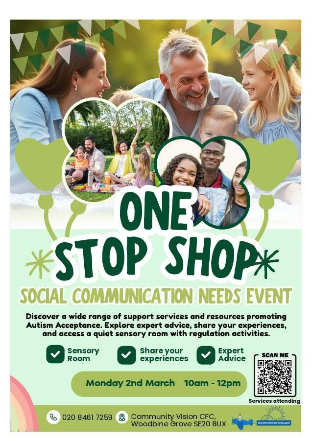 One Stop Shop + Add to Google Calendar + iCal / Outlook export Date Mar 02 2026 Expired! Time 10:00 am - 12:00 pm Location Community Vision Children & Family Centre Woodbine Grove, London SE20 8UX Opening Hour 9-5 Website https://www.bromley.gov.uk/directory-record/7072/community-vision-children-and-family-centre Phone 020 8778 2970 Share this event