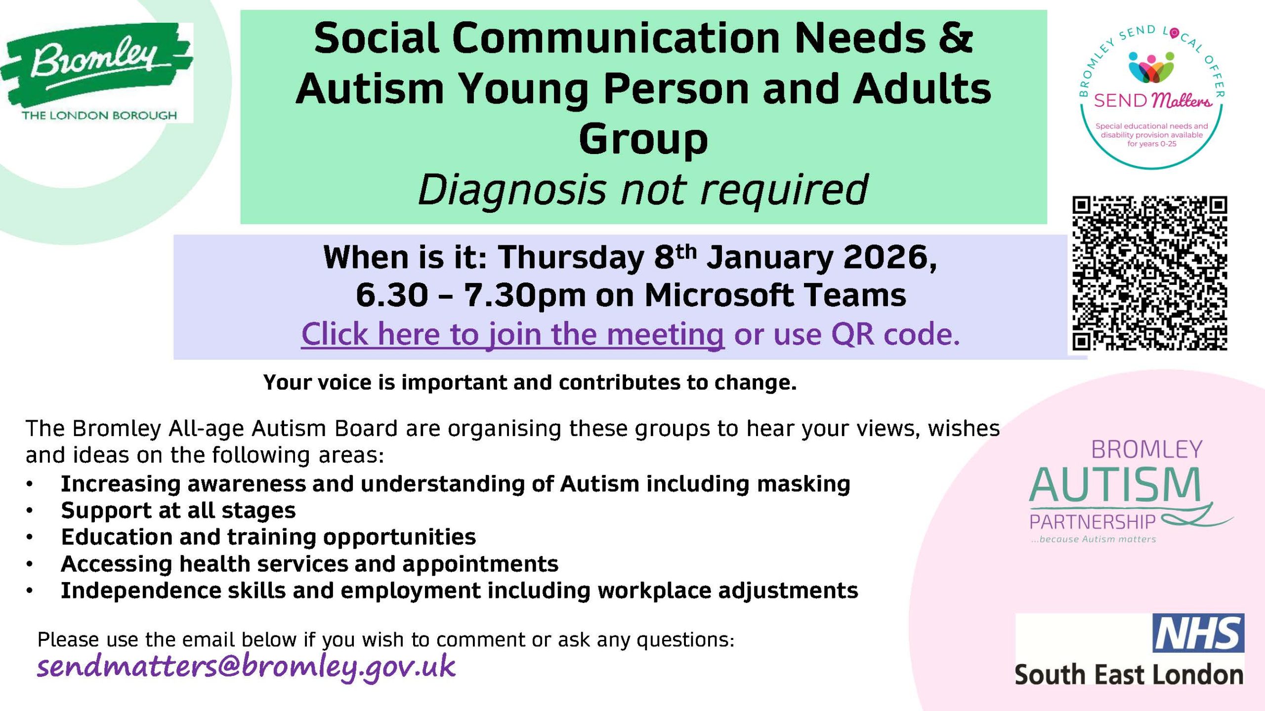 Social Communication Needs & Autism Young Person and Adults Group + Add to Google Calendar + iCal / Outlook export Date Jan 08 2026 Expired! Time 6:30 pm - 7:30 pm Share this event
