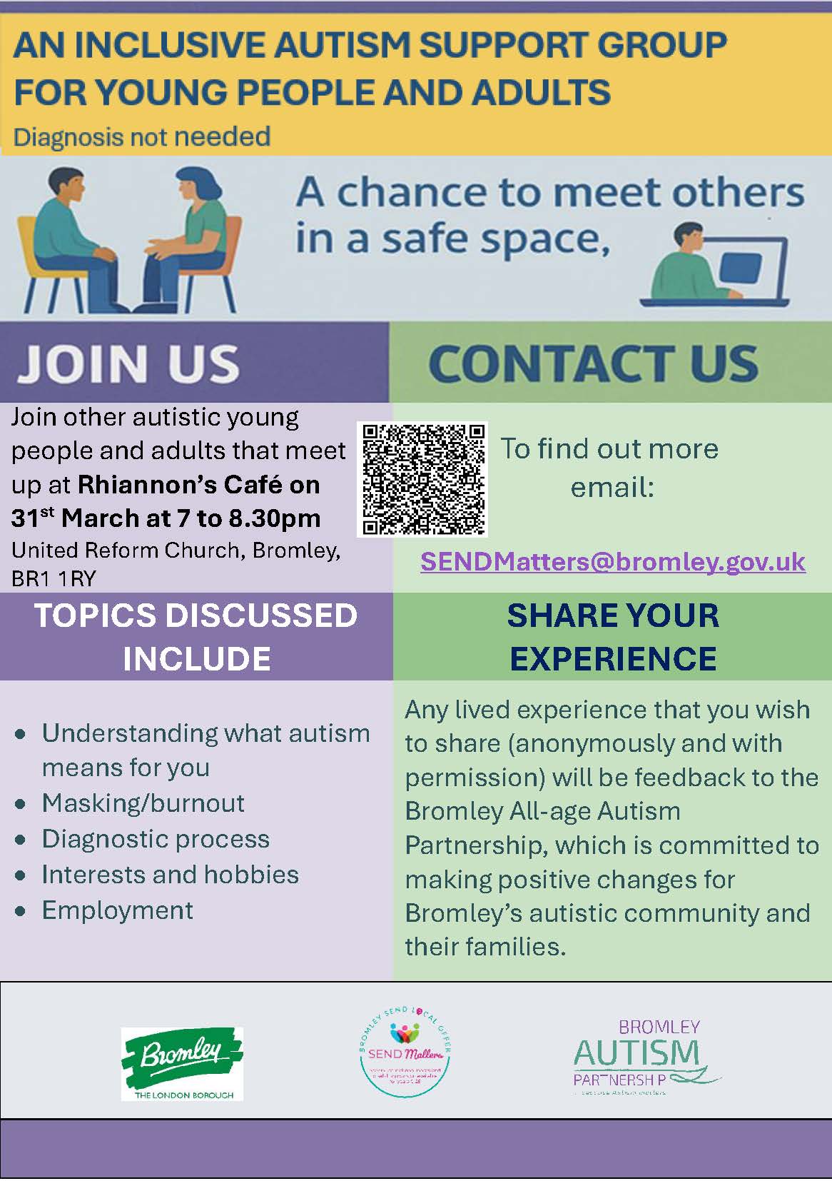 Young Person and Adults Group + Add to Google Calendar + iCal / Outlook export Date Mar 31 2026 Expired! Time 7:00 pm - 8:30 pm Location Rhiannon's Café United Reformed Church, 20 Widmore Road, Bromley, BR1 1RY Website https://rhiannonscafe.co.uk/ Phone 07566 729395 Share this event